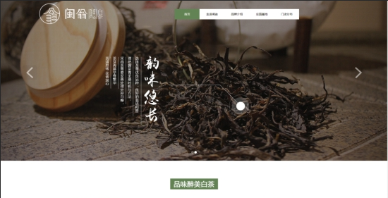网站功能:首页功能介绍:首页以产品介绍为主,以banner大图体现最新产品,并在下方以产品缩略图显示方式提供产品展示图,整体色彩基调为茶绿色、白色为主。