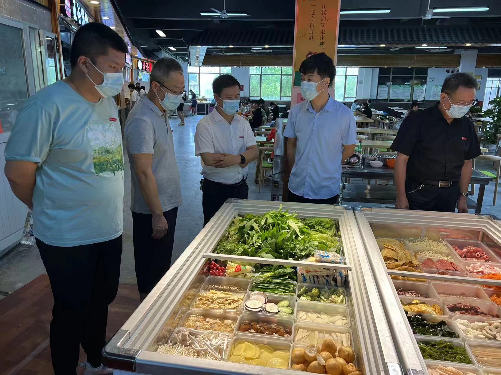 督查小组深入就餐大厅、食堂后厨、食材储存室、洗涤间,对食堂的环境卫生、设施设备、加工环境、食品留样、清洗消毒、人员管理、菜品原材料采购等关键环节进行全面检查。要求严格规范食品加工制作,生熟食分区存放、分砧板切剁,烹饪加工应烧熟煮透,食品留样必须品种齐全、足量足时保存并登记造册。严格按疫情防控规程操作,严格工作人员健康卫生管理,严格餐具洗涤流程和消毒保洁。同时要求增设一元区菜品,所有菜品明码标价,改进用餐“高峰期”选餐取餐流程并提出改进措施。