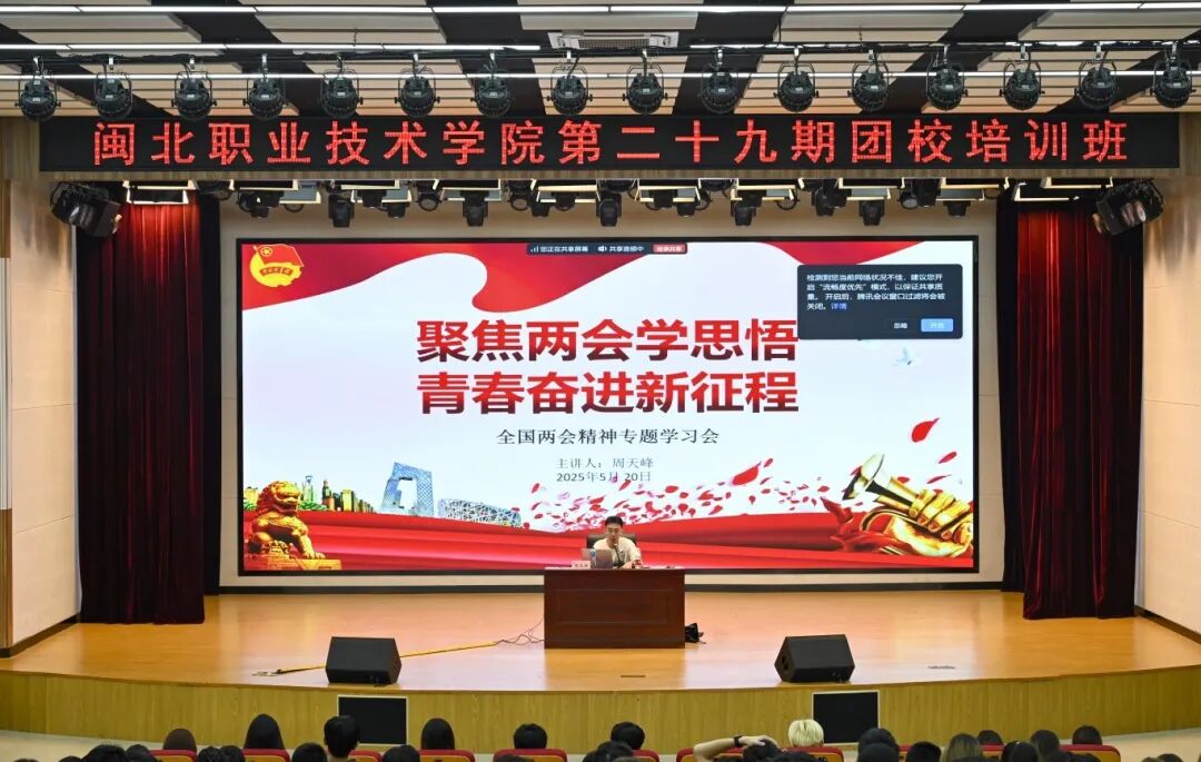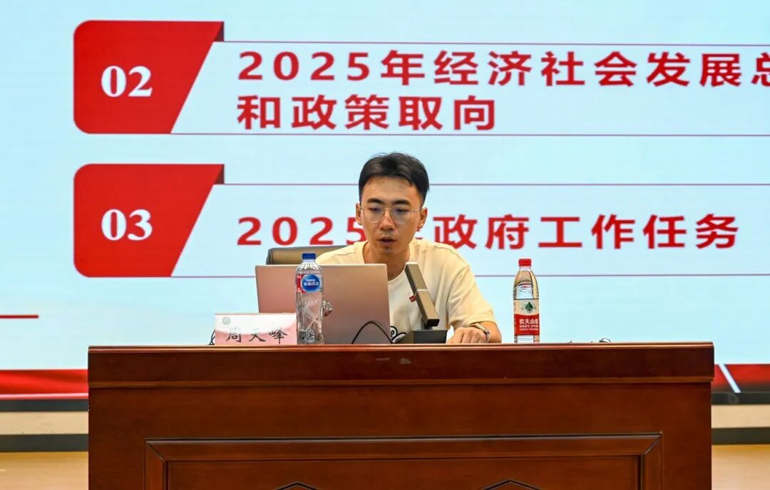 食品系团总支周天峰老师以《聚焦两会学思悟青春奋进新征程》为题,为学员们深入解读了两会的热点议题。他紧密结合青年成长实际,详细阐述了两会精神对大家学习生活的指引作用,激励学员们以两会精神为强大动力,在新征程中勇挑重担,用青春力量为国家发展添砖加瓦。