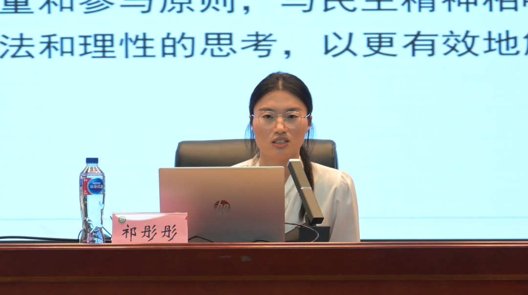信息系团总支祁彤彤老师以《赓续五四薪火志愿践悟初心—— 新时代团员践行五四精神的三个维度》为题,从思想、行动、传承三个方面进行了深入解析。她解码了五四精神的时代基因,分析了其与志愿服务的紧密联系,激励全体学员以志愿行动践行五四精神,书写新时代的青春华章。