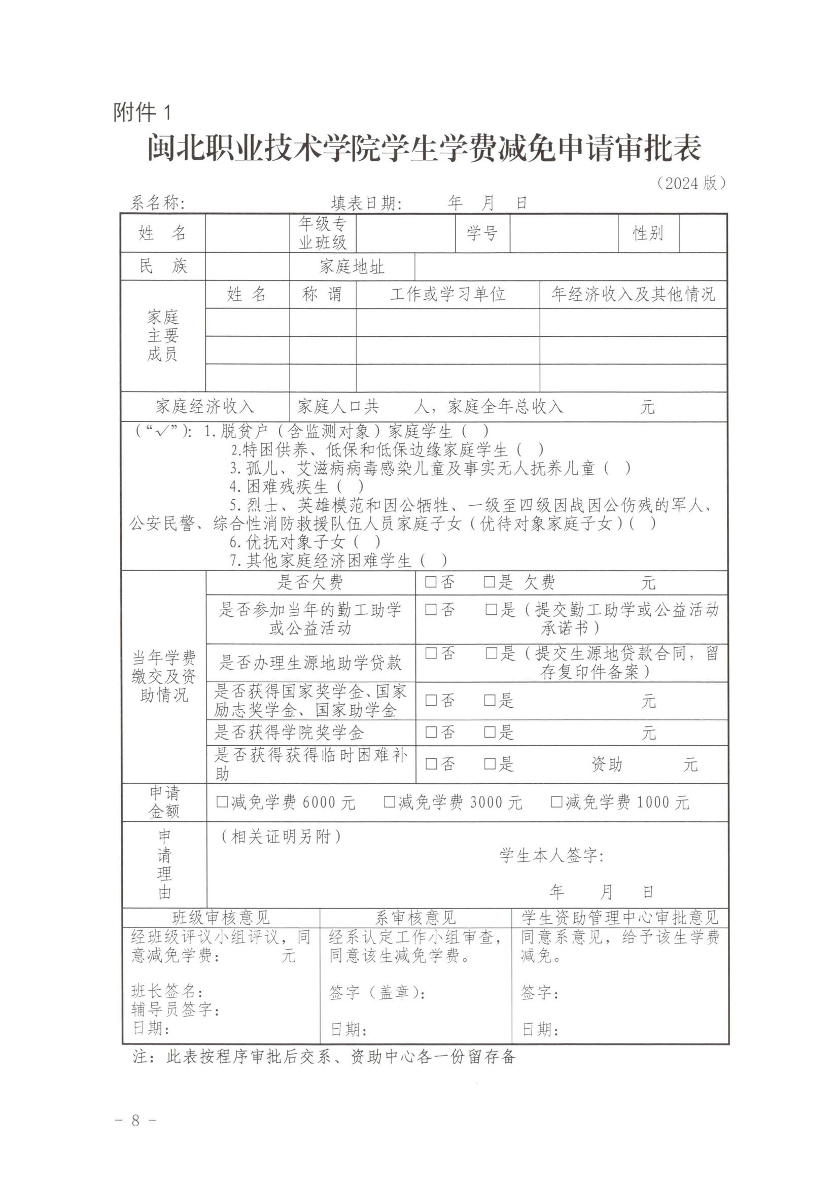 kaiyun网页登录学生学费减免申请审批表(2024版)