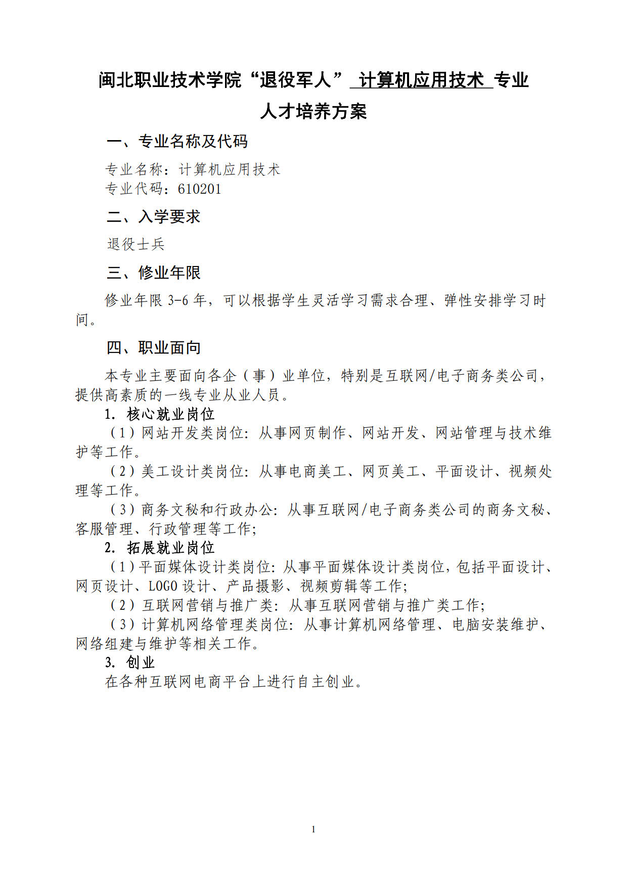 2019级“退役军人”计算机应用技术专业人才培养方案